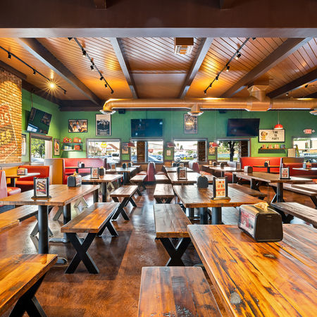 GBC recently completed a 6800 sq. ft. remodel of a Shakey’s Pizza location in West Los Angeles, including an impressive 950 sq. ft. outdoor patio renovation. This project transformed the restaurant inside and out, featuring a fully upgraded dining area, bar, restrooms, and kitchen, along with all-new flooring, updated lighting fixtures, and the addition of a modern game room. On the exterior, we removed and replaced all siding, revamped the entire parking lot, including a new drive approach and full ADA-compliant parking layout, and installed fresh landscaping to enhance curb appeal. The outdoor dining experience was elevated with a complete patio remodel supported by a structural steel canopy designed for long-term durability. To support expanded kitchen operations, we also installed a new grease interceptor. This project highlights our ability to deliver comprehensive, high-quality renovations that improve functionality, aesthetics, and the overall guest experience from the ground up.